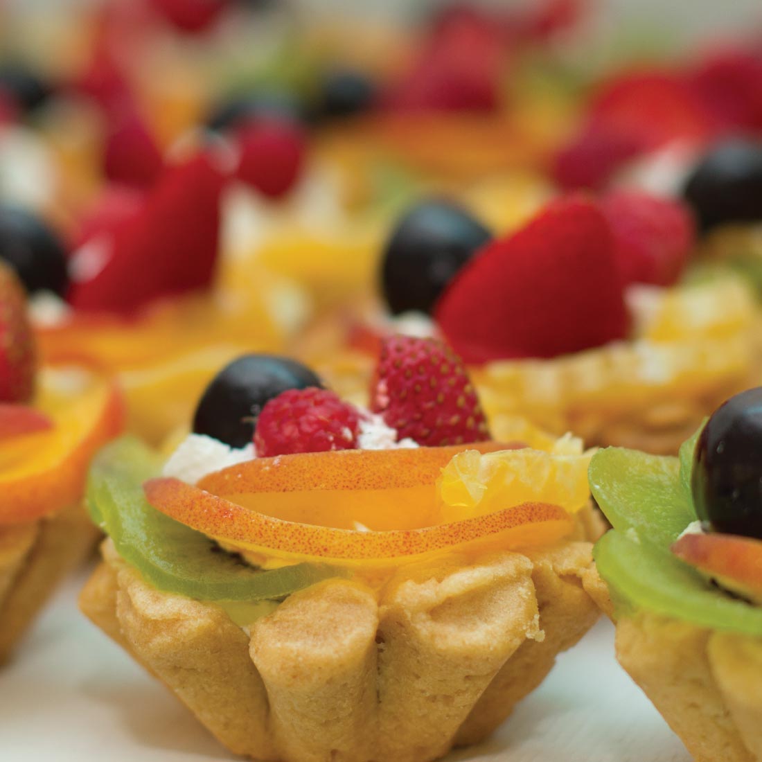 | Mini voćne korpice lindzer testo, vanil krem i sezonsko voće |